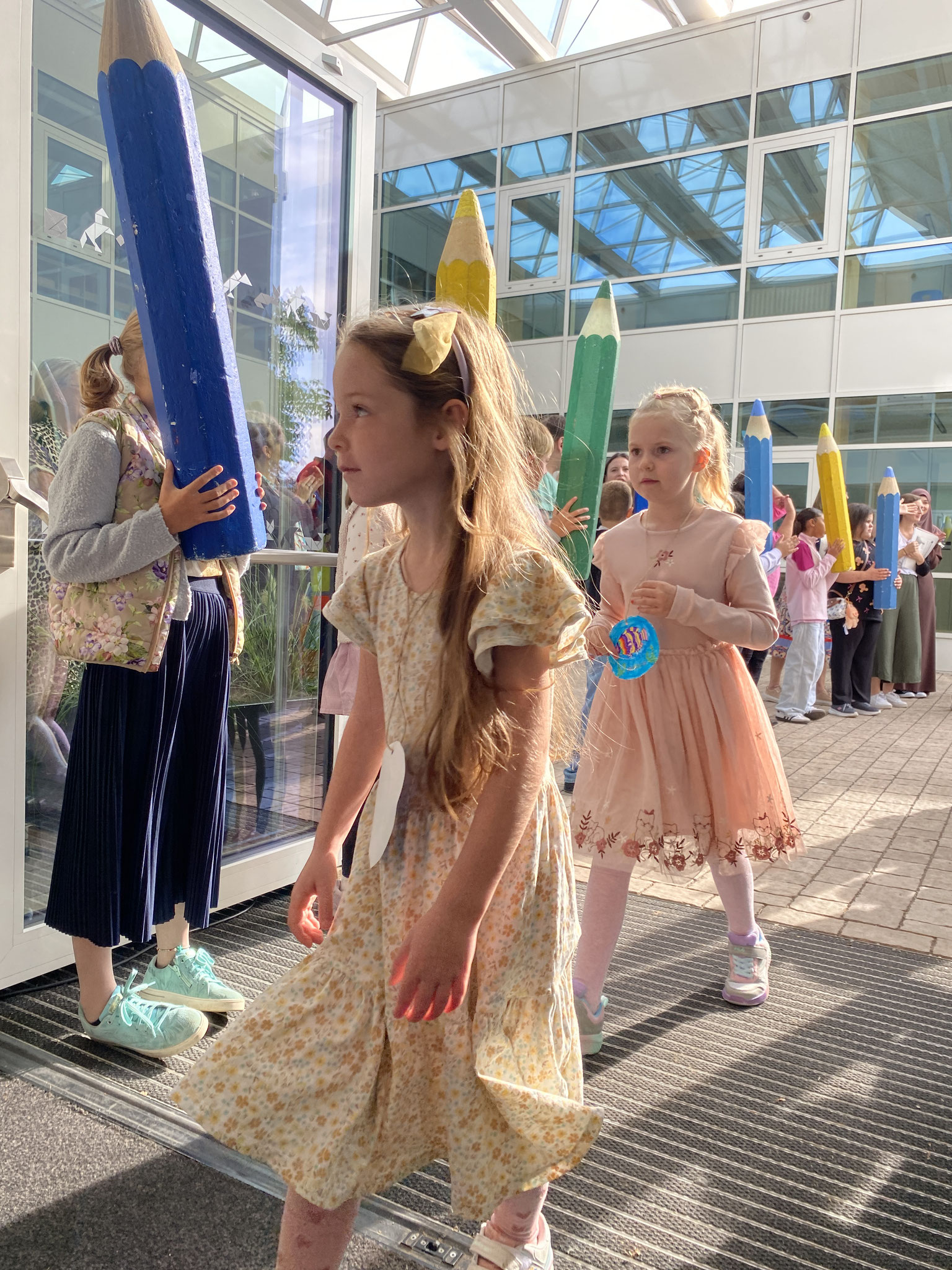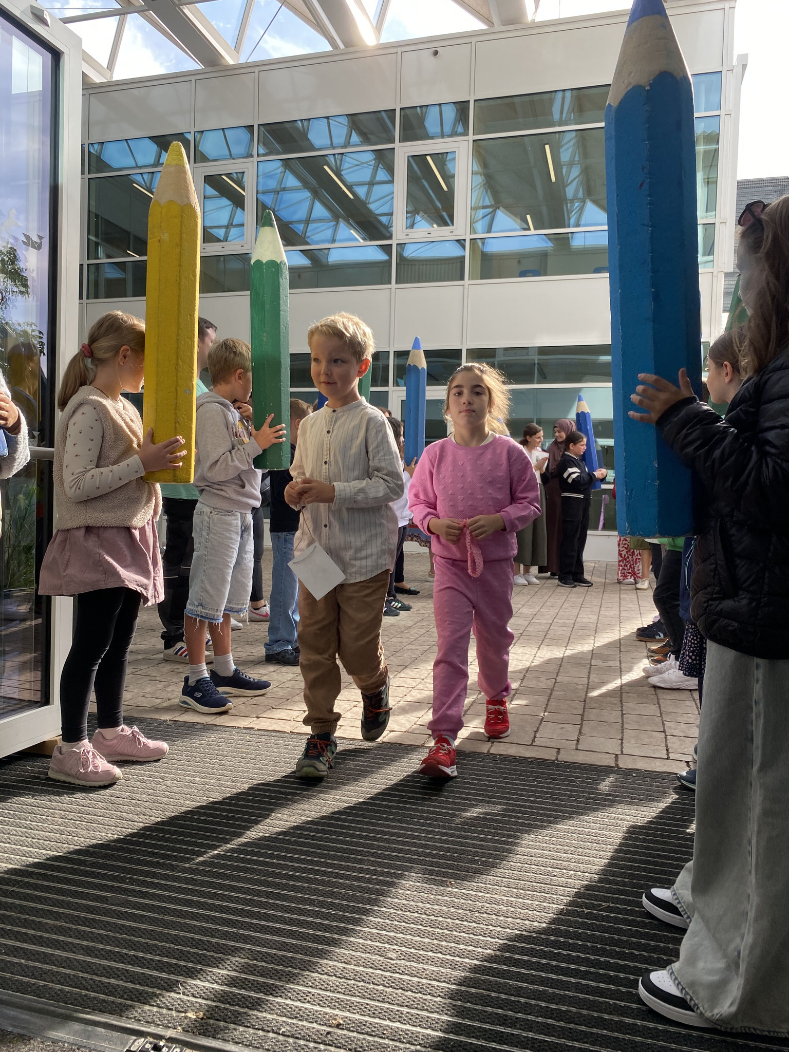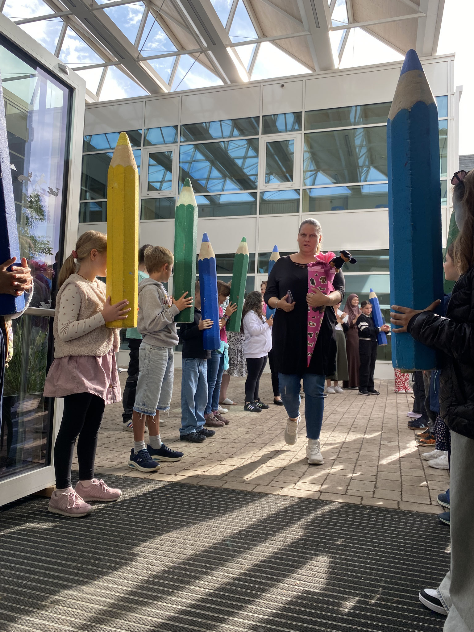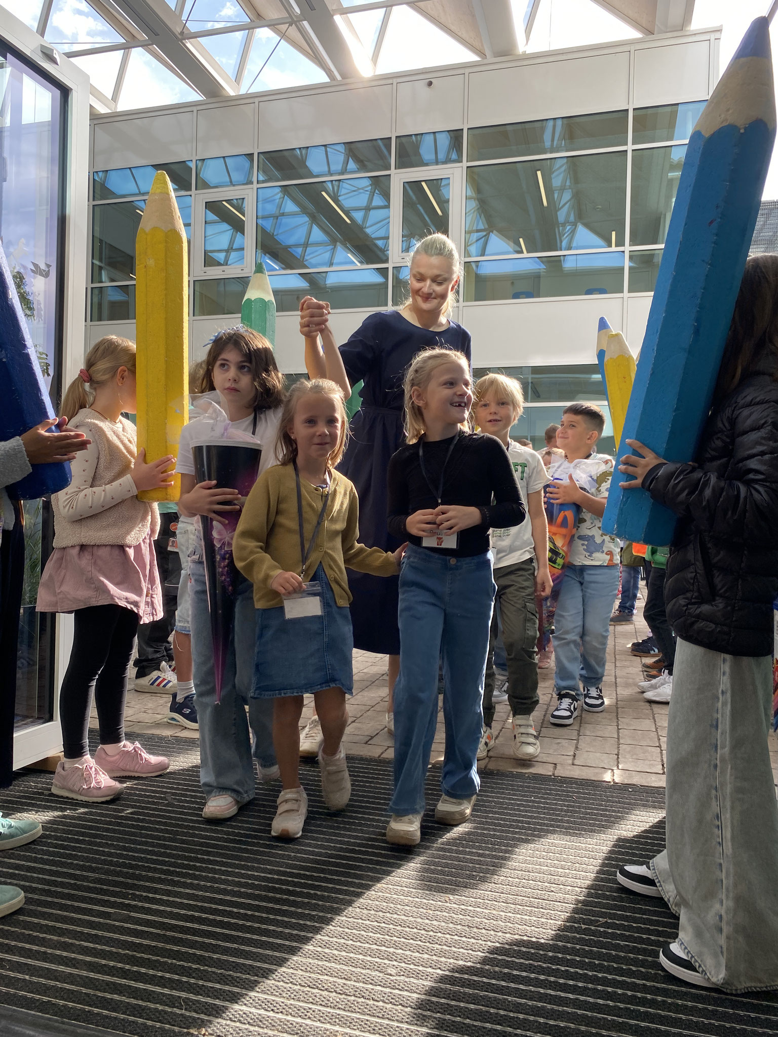 Schülerinnen und Schüler der 2., 3. und 4. Klassen stellten gemeinsam mit Lehrerin Monique de Bruin verschiedene Arten von Medien vor. Doch dabei ging es nicht nur um die verschiedenen Arten, sondern auch um Botschaften, die Medien transportieren.
